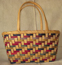 This beautiful basket is woven on a black walnut base with natural reed in an intermediate or advanced design. The design is then accented, as much or as little as you want, with different combinations of space dyed colors, making an interesting look to the basket. Students will have fun picking out their different colors of space dyed. The basket is lashed with waxed linen thread. Some embellishment may need to be finished outside of class. A simpler twill will be offered as well as the one picture. This is
