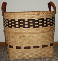 This large basket is well suited for use as a hamper or for blanket storage. Experience working with larger size baskets is a plus, but your desire to create a functional large basket is necessary. Note it does have 2 rims to complete and leather handles. |
