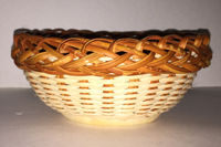 A tribute to Grace Kabel. Start with a 2/2 Twill base, then 3/3 twill up the sides, add the first rim, then the “Kabel” border, up to the last rim and add a snazzy rope handle. This basket has many different techniques going on. Basket may need to be completed at home, we will make it to Kabel border. Created by Grace Kabel - modified by Roxanne Miller |