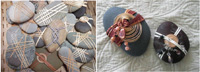 Flat rocks - "skipping rocks" - from various locales will be available for learning how to weave on rocks. Cane of various shades and sizes will be available, as well as "bling" if so desired. Bring your own bling if you wish. The designs that can be created are endless and each one is unique! |