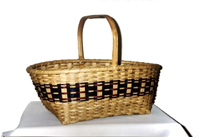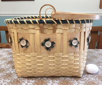 This cute and useful basket will drawn attention wherever you go! Begin with a square base and weave to round using flat, flat oval reed and a maple strip. Embellish with the provided fabric squares with attached buttons and finish off with a rim in coordinating color! The oak swing handle is sturdy and eye catching! You will learn shaping techniques in addition to better weaving skills.